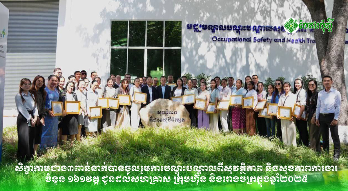 សិក្ខាកាមជាង៣ពាន់នាក់បានចូលរួមការបណ្តុះបណ្តាលពីសុវត្ថិភាព និងសុខភាពការងារចំនួន ១៦១វគ្គ ជូនដល់សហគ្រាស ក្រុមហ៊ុន និងរោងចក្រក្នុងឆ្នាំ២០២៥