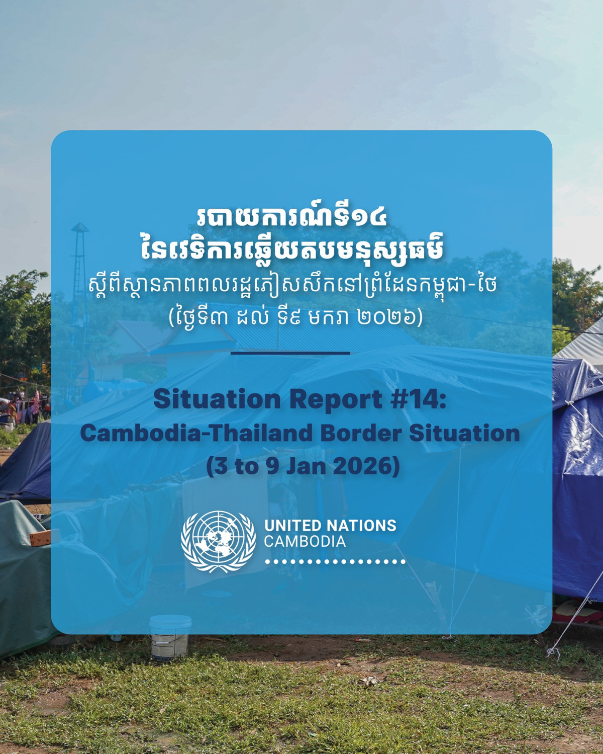 ភ្នំពេញ, ថ្ងៃទី១០ ខែមករា ឆ្នាំ២០២៦ — របាយការណ៍ស្ថានការណ៍លេខ ១៤ របស់ វេទិកាការឆ្លើយតបមនុស្សធម៌ (Humanitarian Response Forum – HRF) ដែលរៀបចំឡើងដោយសហការជាមួយដៃគូមនុស្សធម៌ បានបញ្ជាក់ថា ទោះបីជាការផ្លាស់ទីប្រជាពលរដ្ឋជាធំបានថយចុះ បន្ទាប់ពីជាង ៤ សប្ដាហ៍នៃវិបត្តិព្រំដែនកម្ពុជា–ថៃក៏ដោយ ក៏តម្រូវការមនុស្សធម៌នៅតែមានសារៈសំខាន់ និងស្ថានការណ៍នៅតំបន់រងផលប៉ះពាល់នៅតែមានភាពមិនប្រាកដប្រជា។ របាយការណ៍នេះ គ្របដណ្តប់រយៈពេលពីថ្ងៃទី ៣ ដល់ថ្ងៃទី ៩ ខែមករា ឆ្នាំ២០២៦ បានលើកឡើងថា ប្រជាពលរដ្ឋភៀសខ្លួនម