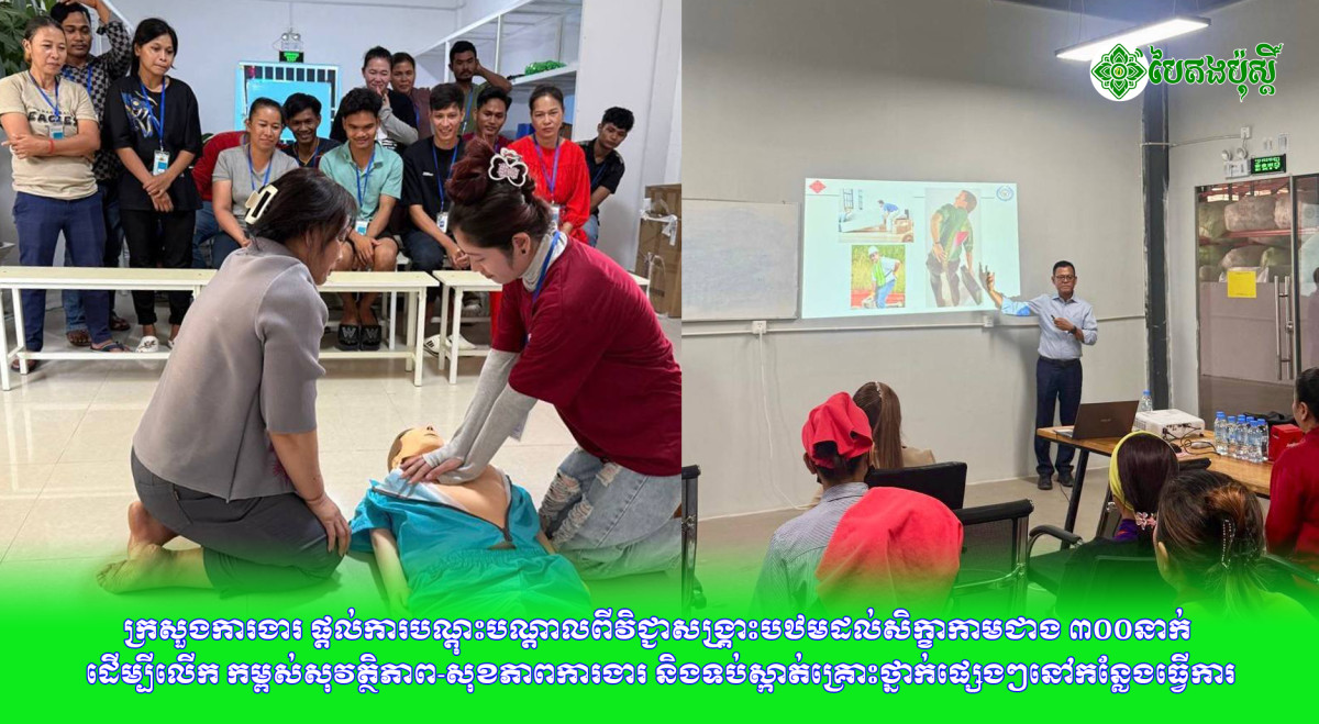 ក្រសួងការងារ ផ្តល់ការបណ្តុះបណ្តាលពីវិជ្ជាសង្រ្គោះបឋមដល់សិក្ខាកាមជាង ៣០០នាក់ ដើម្បីលើក កម្ពស់សុវត្ថិភាព-សុខភាពការងារ និងទប់ស្កាត់គ្រោះថ្នាក់ផ្សេងៗនៅកន្លែងធ្វើការ
