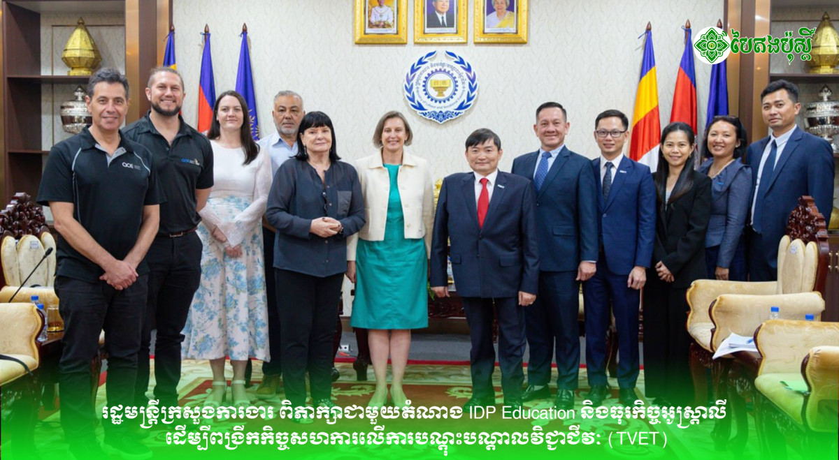 រដ្ឋមន្ត្រីក្រសួងការងារ ពិភាក្សាជាមួយតំណាង IDP Education និងធុរកិច្ចអូស្រ្តាលី ដើម្បីពង្រីកកិច្ចសហការលើការបណ្តុះបណ្តាលវិជ្ជាជីវៈ (TVET)