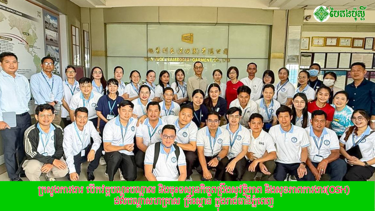 ក្រសួងការងារ បើកវគ្គបណ្តុះបណ្តាល និងចុះទស្សនកិច្ចពង្រឹងសុវត្ថិភាព និងសុខភាពការងារ(OSH)ដល់បណ្តាសហគ្រាស គ្រឹះស្ថាន ក្នុងរាជធានីភ្នំពេញ