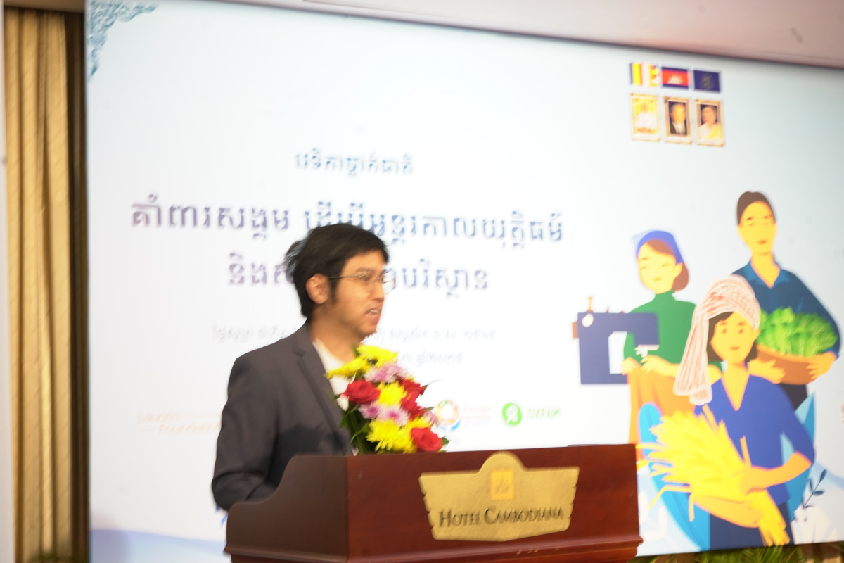 លោក សុខ ពិទូរ្យ ប្រធានកម្មវិធីអង្គការអុកស្វាម បានមានប្រសាសន៍ក្នុងមតិស្វាគមន៍របស់លោកថា “ការផ្លាស់ប្តូរដែលយុត្តិធម៌ត្រូវតែធានាថា កម្មករស្ត្រីពីគ្រប់ផ្នែកមិនត្រូវបានទុកចោលនោះទេ។ នៅពេលដែលសង្គមផ្លាស់ប្តូរទៅរកការងារបៃតង ថាមពលស្អាត និងសេដ្ឋកិច្ចបៃតងកាន់តែរឹងមាំ កម្ពុជាត្រូវតែកសាងប្រព័ន្ធដែលមានគណនេយ្យភាព និងប្រកបដោយបរិយាប័ន្ន តាមរយៈការសន្ទនាក្នុងចំណោមអ្នកផ្តល់សេវាសន្តិសុខសង្គម ថ្នាក់ដឹកនាំក្នុងតំបន់ និងកម្មករ។"