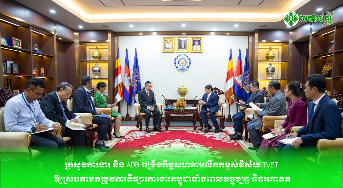 ក្រសួងការងារ និង ADB ពង្រឹងកិច្ចសហការលើកកម្ពស់វិស័យ TVET ឱ្យស្របតាមតម្រូវការទីផ្សារការងារកម្ពុជាទាំងពេលបច្ចុប្បន្ន និងអនាគត