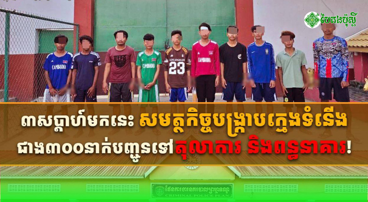 ៣សប្តាហ៍មកនេះ សមត្ថកិច្ចបង្ក្រាបក្មេងទំនើង ជាង៣០០នាក់ បញ្ជូនទៅតុលាការ និងពន្ធនាគារ