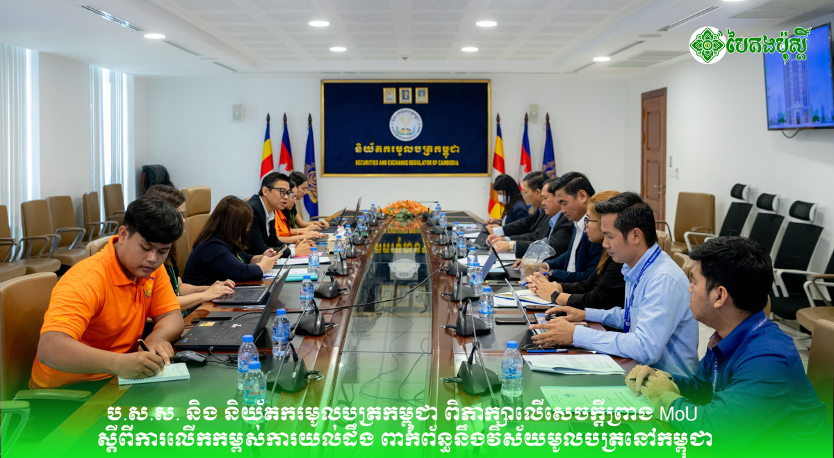 ប.ស.ស. និង និយ័តករមូលបត្រកម្ពុជា ពិភាក្សាលើសេចក្ដីព្រាង MoU ស្តីពីការលើកកម្ពស់ការយល់ដឹង ពាក់ព័ន្ធនឹងវិស័យមូលបត្រនៅកម្ពុជា
