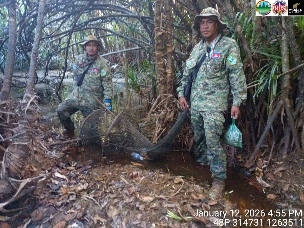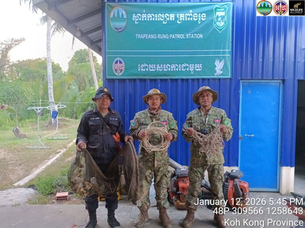 ក្រសួងបរិស្ថានបានឱ្យដឹងថា ដោយមានកិច្ចសហការរវាង មន្រ្តីឧទ្យានុរក្សនៃដែនជម្រកសត្វព្រៃតាតៃ ស្នាក់ការល្បាតត្រពាំងរូង ជាមួយកម្លាំងកងរាជអាវុធហត្ថលើផ្ទៃប្រទេស និងដោយមានការគាំទ្រថវិកា និងបច្ចេកទេសពីអង្គការសម្ព័ន្ធមិត្តសត្វព្រៃ នៅថ្ងៃទី១២ ខែមករា ឆ្នាំ២០២៦ បានធ្វើការល្បាត រុករក ទប់ស្កាត់ និងបង្ក្រាបបទល្មើសធនធានធម្មជាតិបានធ្វើការដោះអន្ទាក់ សម្រាប់ដាក់យកសត្វព្រៃចំនួន ០៥ខ្សែ ឧបករណ៍លបចាប់សត្វ ចំនួន០១ដៃ ស្មើ០៣ម៉ែត្រ និងសន្ទូចកន្ធាយចំនួន០៨ខ្សែ ស្មើ៨០ផ្លែ ដែលទាំងអស់នេះ ជាអញ្ញាតជន ស្ថិតនៅភូមិត្រពាំងរូង ឃុំត្រពាំងរូង ស្រុកកោះកុង ខេត្តកោះកុង។ ចំពោះវត្ថុតាងក្រុមការងារបានយកមករក្សាទុកនៅស្នាក់ការល្បាតត្រពាំងរូង៕