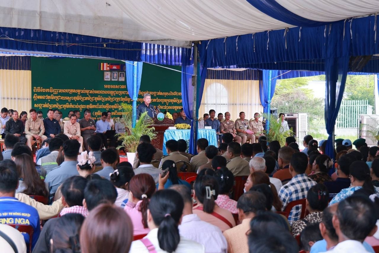 បណ្ណកម្មសិទ្ធិដីធ្លីជាង១ម៉ឺនបណ្ណ ត្រូវបានចែកជូនដល់ប្រជាពលរដ្ឋ១២ភូមិ នៅស្រុកកៀន ស្វាយ ខេត្តកណ្ដាល
