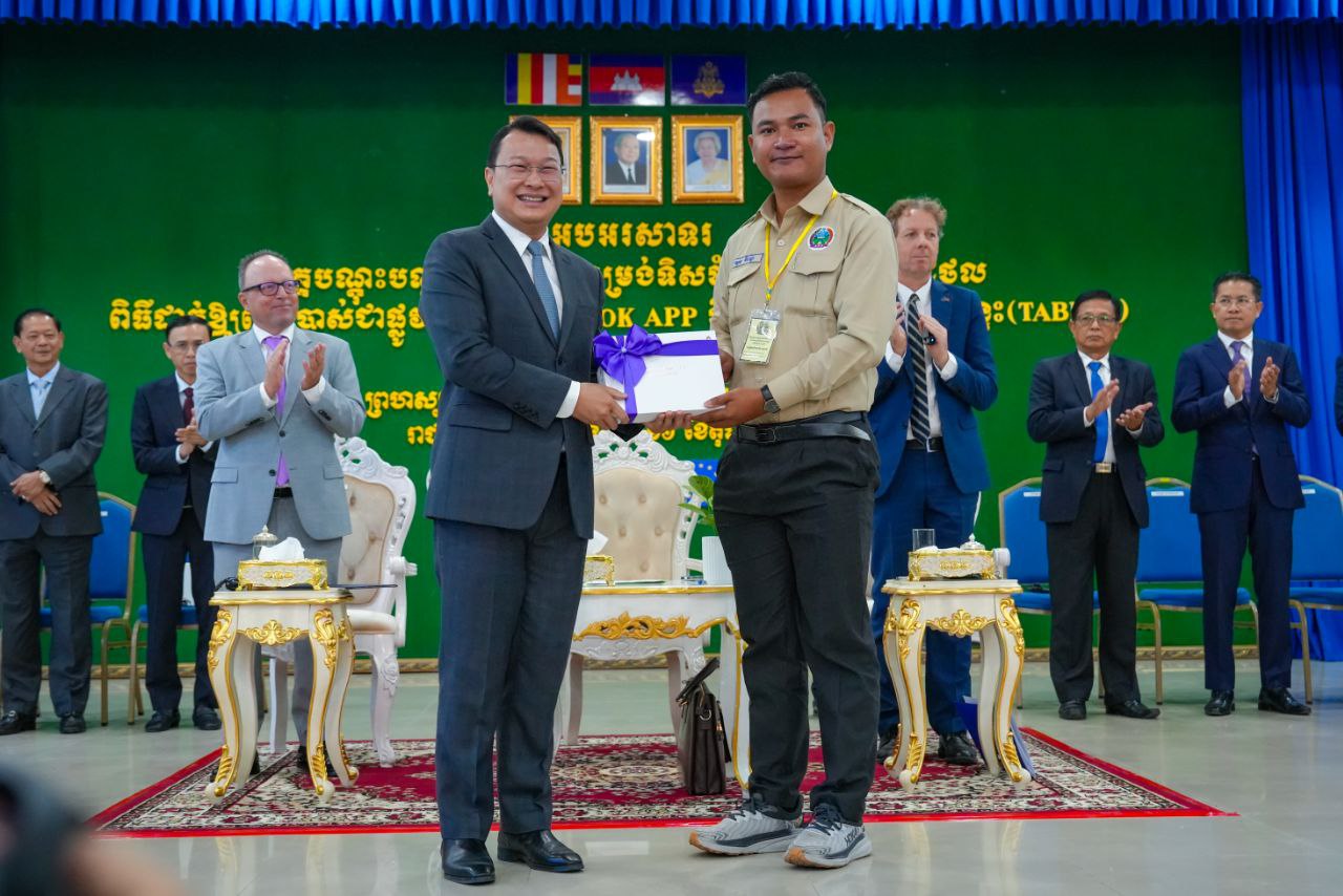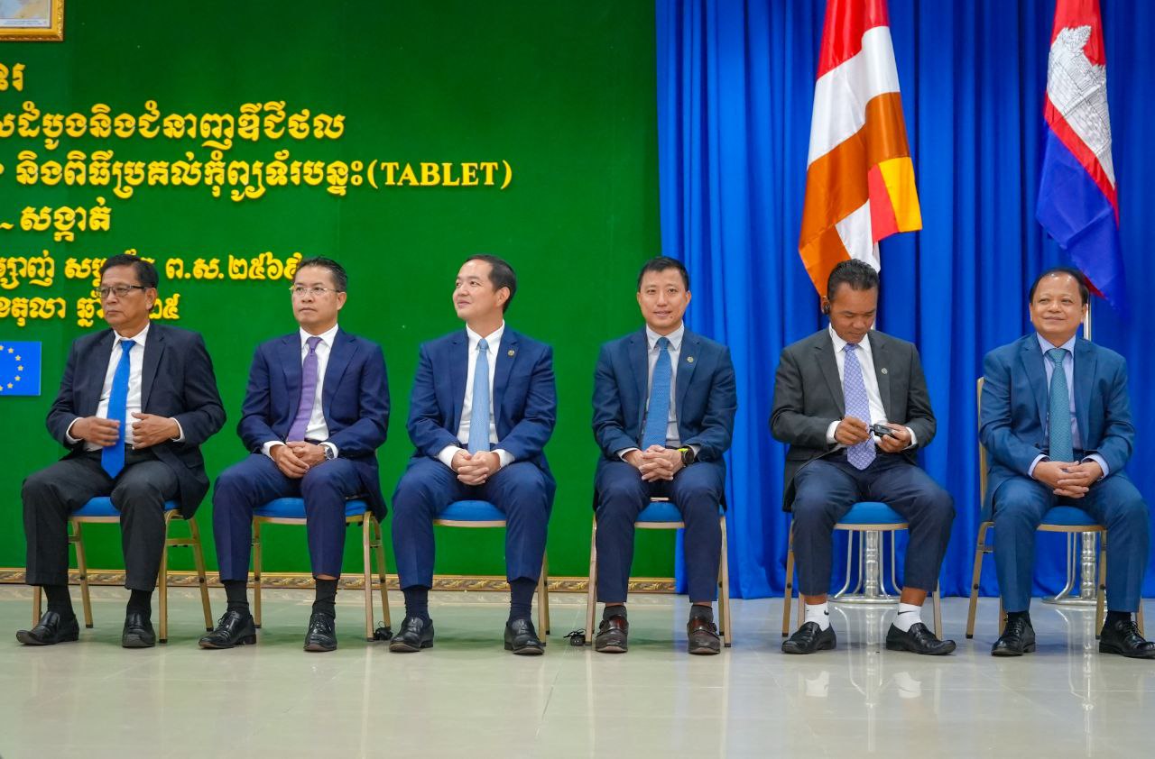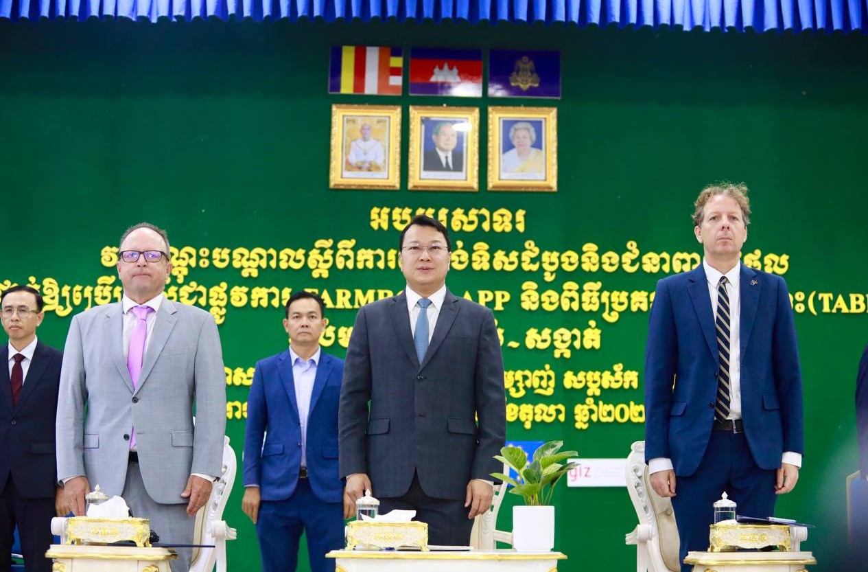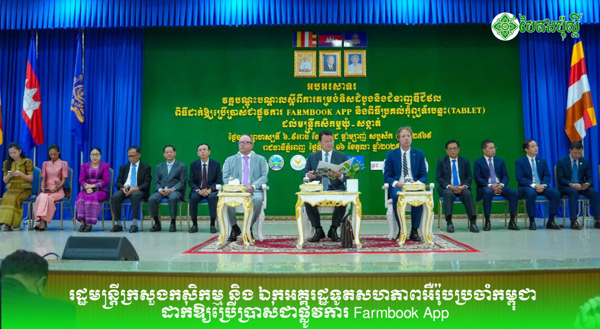 ឯកឧត្តម ឌិត ទីណា រដ្ឋមន្រ្តីក្រសួងកសិកម្ម រុក្ខាប្រមាញ់ និងនេសាទ ឯកឧត្តម Igor Driesmans ឯកអគ្គរដ្ឋទូតសហភាពអឺរ៉ុបប្រចាំកម្ពុជា និងឯកឧត្តម Stefan Messerer ឯកអគ្គរដ្ឋទូតអាល្លឺម៉ង់ប្រចាំកម្ពុជា នៅថ្ងៃទី១៣ ខែតុលា ឆ្នាំ២០២៥ បានអញ្ជើញជាអធិបតីភាពក្នុងពិធីដាក់ឱ្យប្រើប្រាស់ជាផ្លូវការ Farmbook App និងពិធីប្រគល់កុំព្យូទ័របន្ទះ (Tablet) ដល់មន្រ្តីកសិកម្មឃុំ-សង្កាត់ នៅសាកលវិទ្យាល័យភូមិន្ទកសិកម្ម។