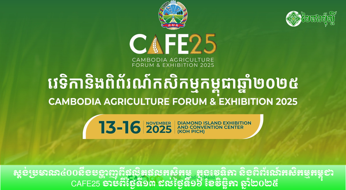 ស្ដង់ប្រមាណ៤០០នឹងបង្ហាញពីផលិតផលកសិកម្ម ក្នុងវេទិកា និងពិព័រណ៍កសិកម្មកម្ពុជា CAFE25 ចាប់ពីថ្ងៃទី១៣ ដល់ថ្ងៃទី១៦ ខែវិច្ឆិកា ឆ្នាំ២០២៥