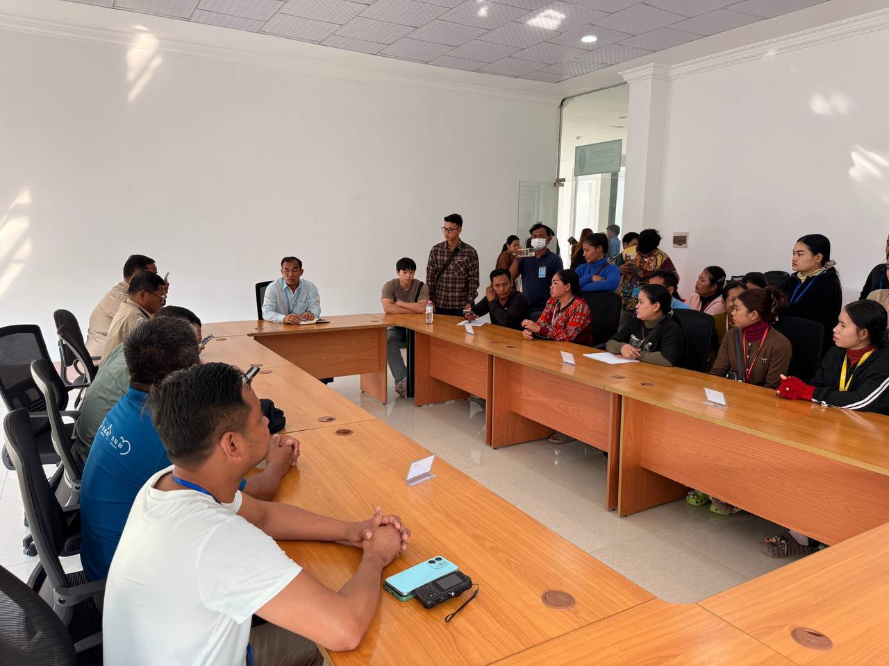 សួមជម្រាបថា ក្រោយពីទទួលបានព័ត៌មាននេះភ្លាមៗ ឯកឧត្តម ទុយ ស៊ីផាន់ រដ្ឋលេខាធិការក្រសួងការងារ និងបណ្តុះបណ្តាលវិជ្ជាជីវៈ រួមជាមួយក្រុមអន្តរាគមន៍ក្រសួង និងមន្ទីរការងារ សហការជាមួយអាជ្ញាធរមូលដ្ឋាន បានចុះទៅសម្របសម្រួលដោះស្រាយករណីនេះដោយមានការចូលរួមពីតំណាងក្រសួងការងារ និងបណ្ដុះបណ្ដាលវិជ្ជាជីវៈ, តំណាងមន្ទីរការងារ និងបណ្ដុះបណ្ដាលវិជ្ជាជីវៈខេត្តកំពង់ស្ពឺ, តំណាងអាជ្ញាធរមូលដ្ឋាន, តំណាងរោងចក្រ និងតំណាងកម្មករ-និយោជិតដើម្បីស្តាប់កង្វល់ និងបញ្ហានានារបស់បងប្អូនកម្មករ។