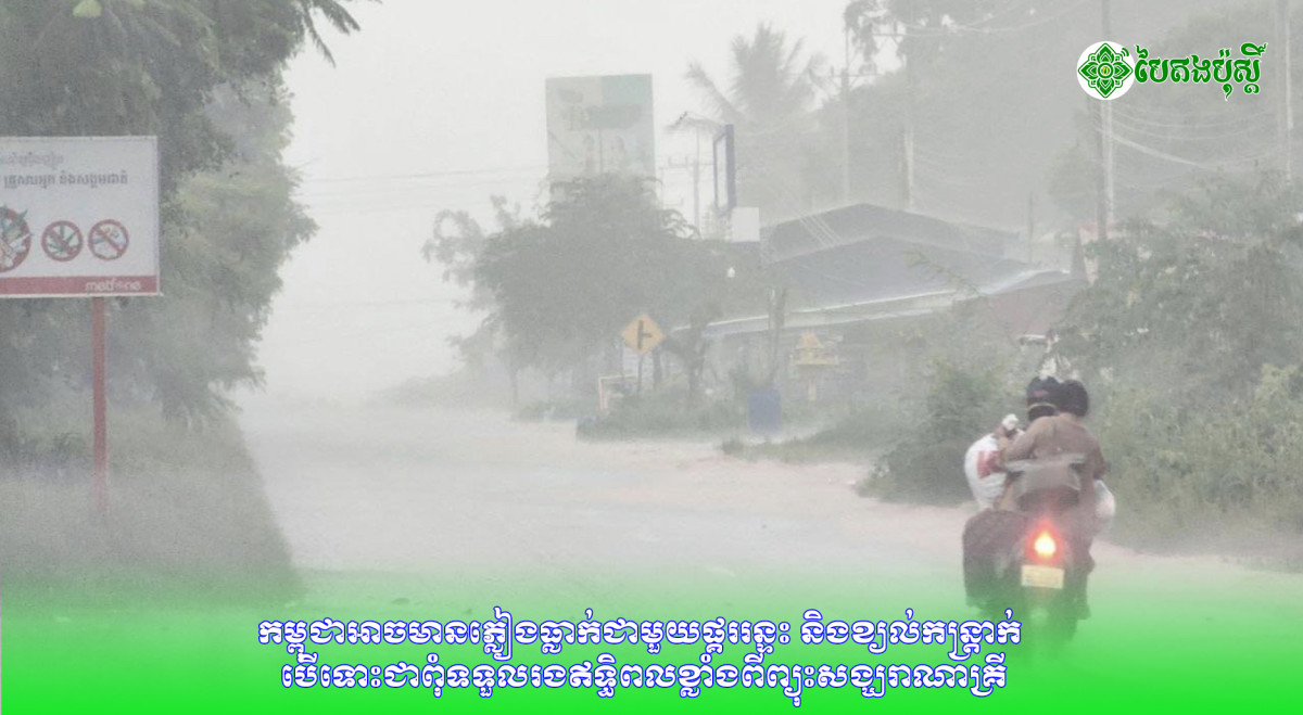កម្ពុជាអាចមានភ្លៀងធ្លាក់ជាមួយផ្គររន្ទះ និងខ្យល់កន្ត្រាក់រាយប៉ាយនៅទូទាំងប្រទេស បើទោះជាពុំទទួលរងឥទ្ធិពលខ្លាំងពីព្យុះសង្ឃរា ដែលបានវិវត្តមកពីព្យុះណាគ្រីយ៉ាងណាក៏ដោយ។