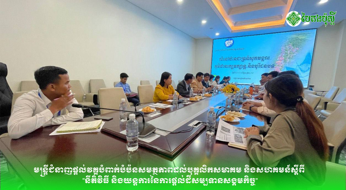 មន្ត្រីជំនាញផ្ដល់វគ្គបំពាក់បំប៉នសមត្ថភាពដល់បុគ្គលិកសមាគម និងសហគមន៍ស្ដីពី "នីតិវិធី និងយន្តការនៃការផ្ដល់ដីសម្បទានសង្គមកិច្ច"
